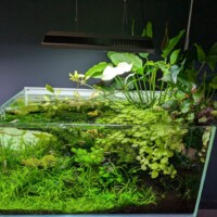 I didn’t actually need to buy anything, but hey, you have to play nice. I came home with Lobelia cardinalis ‘Mini’ which might be the same as the Lobelia cardinalis ‘Dwarf’ I tried previously in the Fireplace aquarium. This time it’s going in the low-tech Shrimphaus. Also for the Shrimphaus, some Helanthium tenellum ‘Green’, which looks pretty similar to the Helanthium bolivianum ‘Quadricostatus’ which did well previously. Finally, some (more) Rotala rotundifolia ‘Blood Red’ which looks so amazing in Aquarium Gardens and which has struggled mightily for me in the Fireplace Aquarium – probably not enough light.