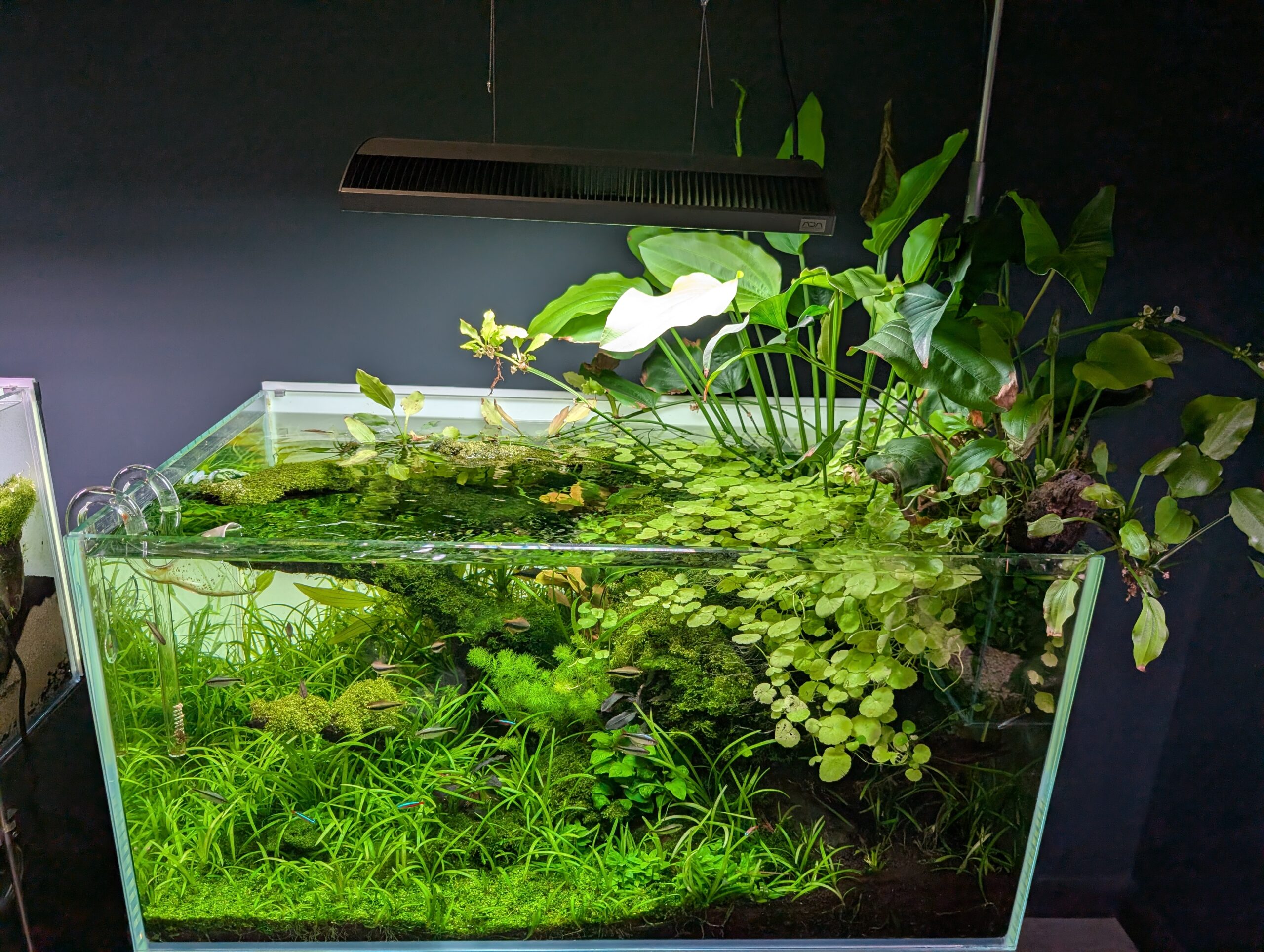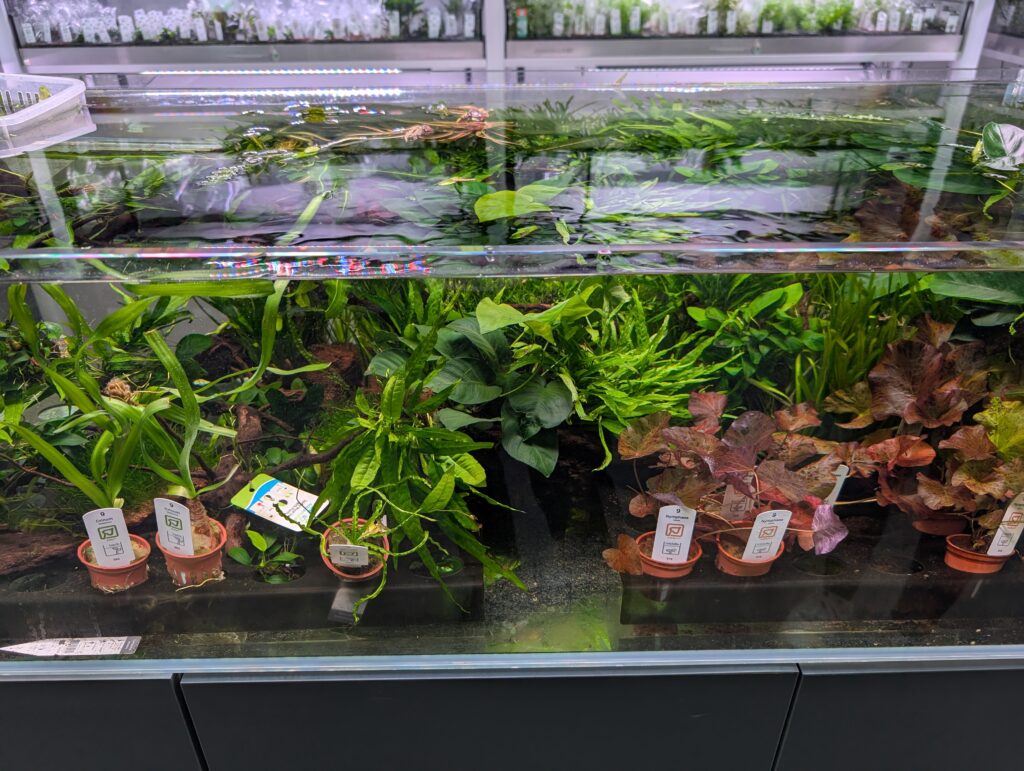 I didn’t actually need to buy anything, but hey, you have to play nice. I came home with Lobelia cardinalis ‘Mini’ which might be the same as the Lobelia cardinalis ‘Dwarf’ I tried previously in the Fireplace aquarium. This time it’s going in the low-tech Shrimphaus. Also for the Shrimphaus, some Helanthium tenellum ‘Green’, which looks pretty similar to the Helanthium bolivianum ‘Quadricostatus’ which did well previously. Finally, some (more) Rotala rotundifolia ‘Blood Red’ which looks so amazing in Aquarium Gardens and which has struggled mightily for me in the Fireplace Aquarium – probably not enough light.
